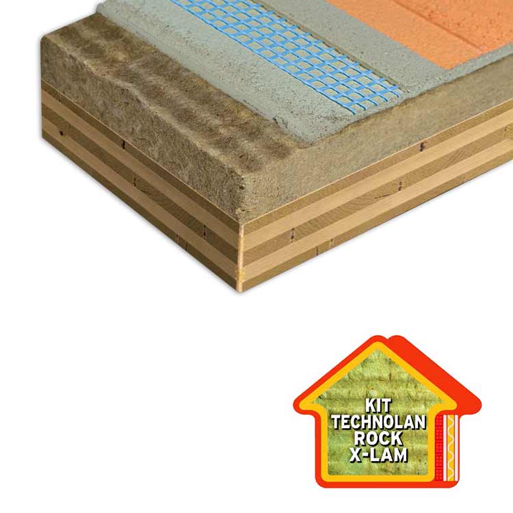 con pannelli in lana di roccia da applicare su supporto con pannelli in legno tipo X-LAM.